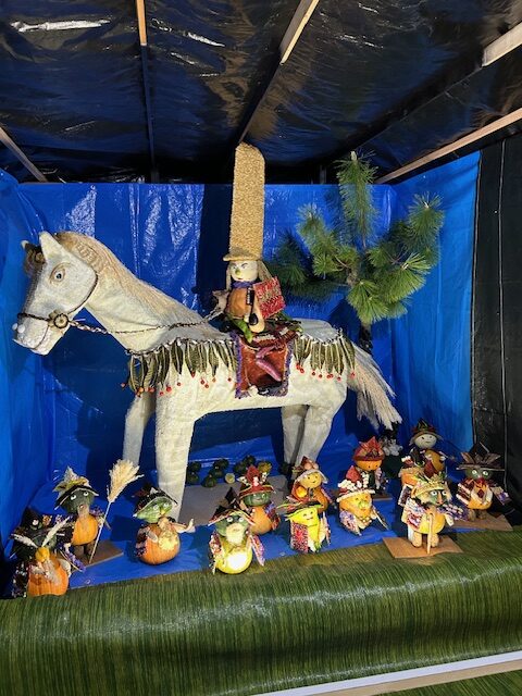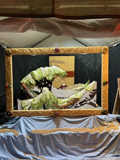 野菜や草花で見立て細工を作って五穀豊穣への感謝を表すもので、300年以上続く風情のあるおまつりです