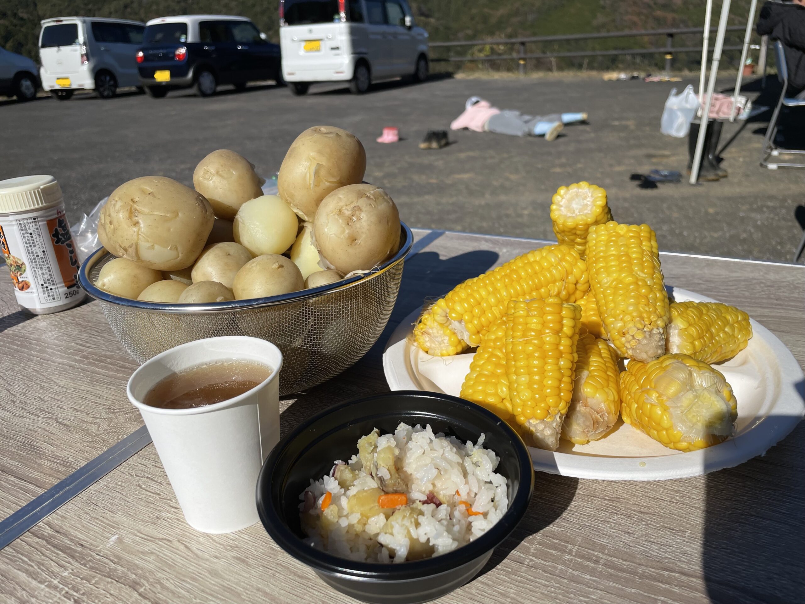 お昼ご飯には、弊社食品部が腕を振るったあたたかいお芋ご飯と中華スープをご提供。お料理は、土佐あかうしの旨味が詰まった「チャ~油」を使用しており、風味豊かな味わいとなっています。何度もおかわりするお子様もいるほど好評で、レシピを尋ねられる場面もありました。また、ゆでじゃがいもや焼き芋のほか、以前収穫したとうもろこしも味わっていただき、秋の味覚と季節の恵みを存分に楽しんでいただけたのではないかと思います。