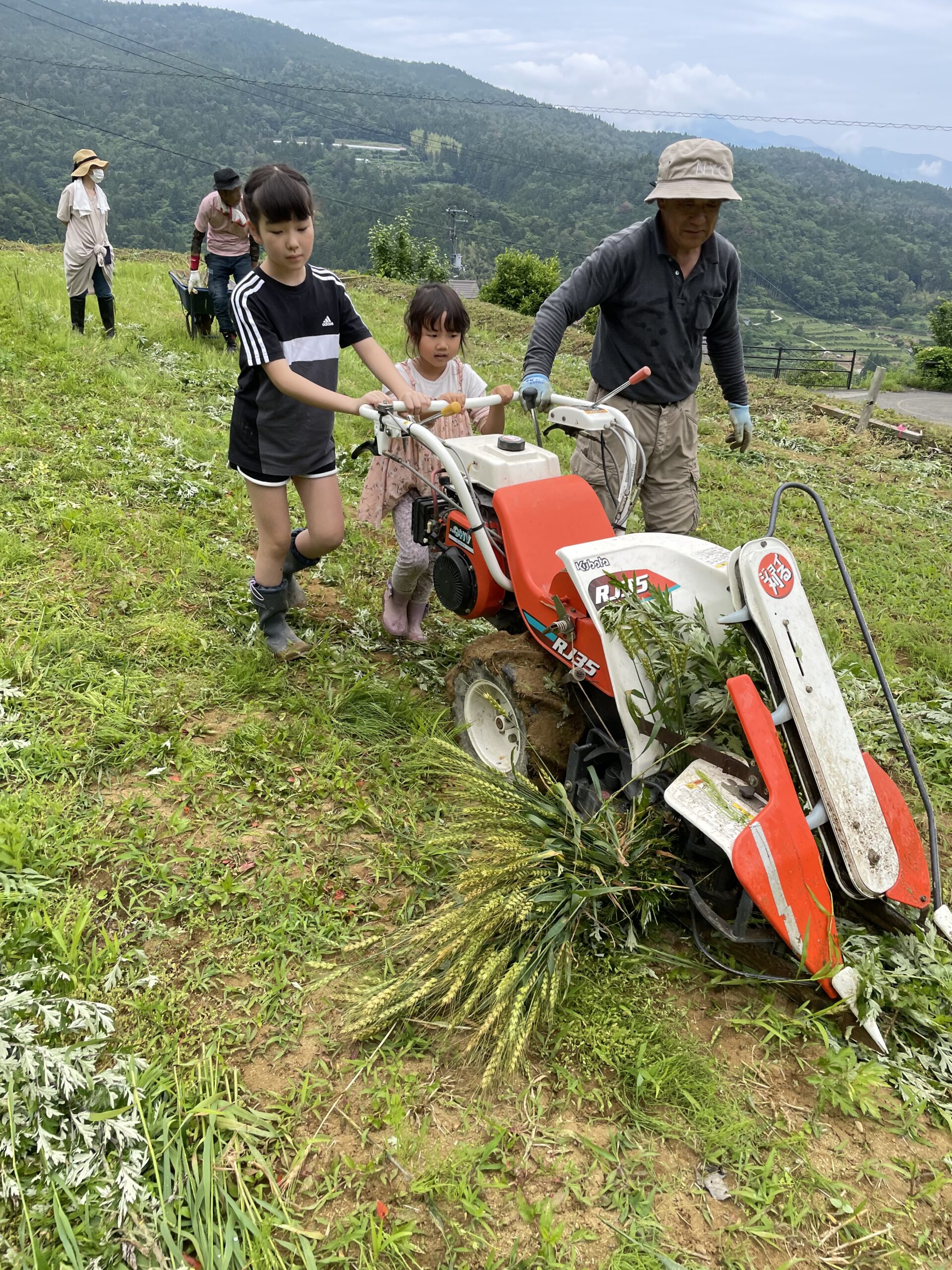 同時進行で行われたのは「小麦刈り」と「はで掛け」体験。