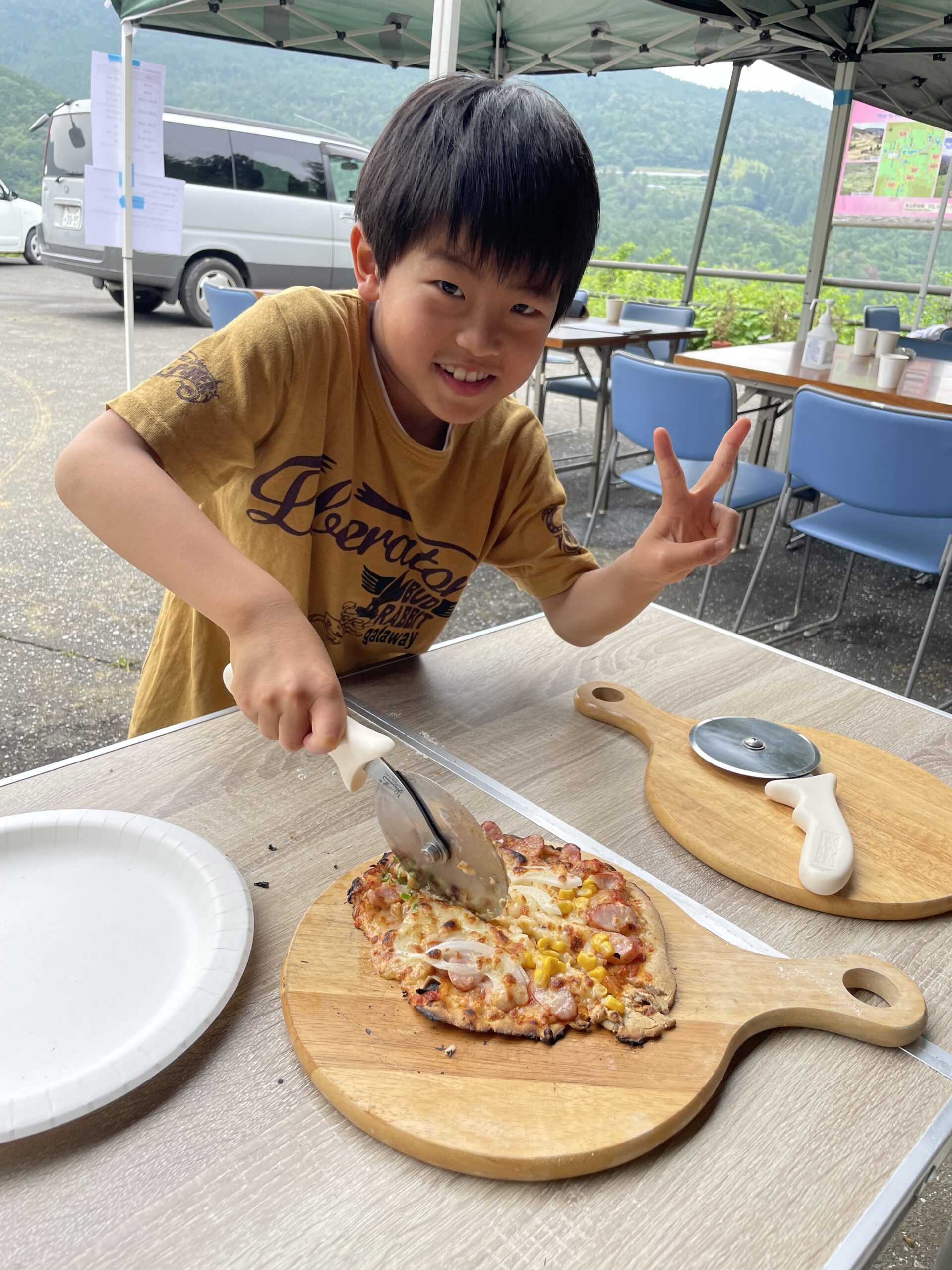 お昼ごはんは、みんなでピザづくり!