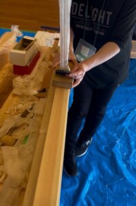 練習では同じ状態の鉋を使って親方は綺麗に削れるのに、自分がやると全然削れず、どうしたらいいかもさっぱりわからなくなったりしましたが、本番では自分のベストは出せたと思います。