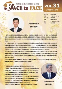 社外報 社外報第31号発行! 2026.01.22 社外報第31号を発行たしました。 ↓画像をクリックして、ご覧くださいませ。 過去の社外報も、【社外報 FACE to FACE】よりご覧いただけます。 Tweet