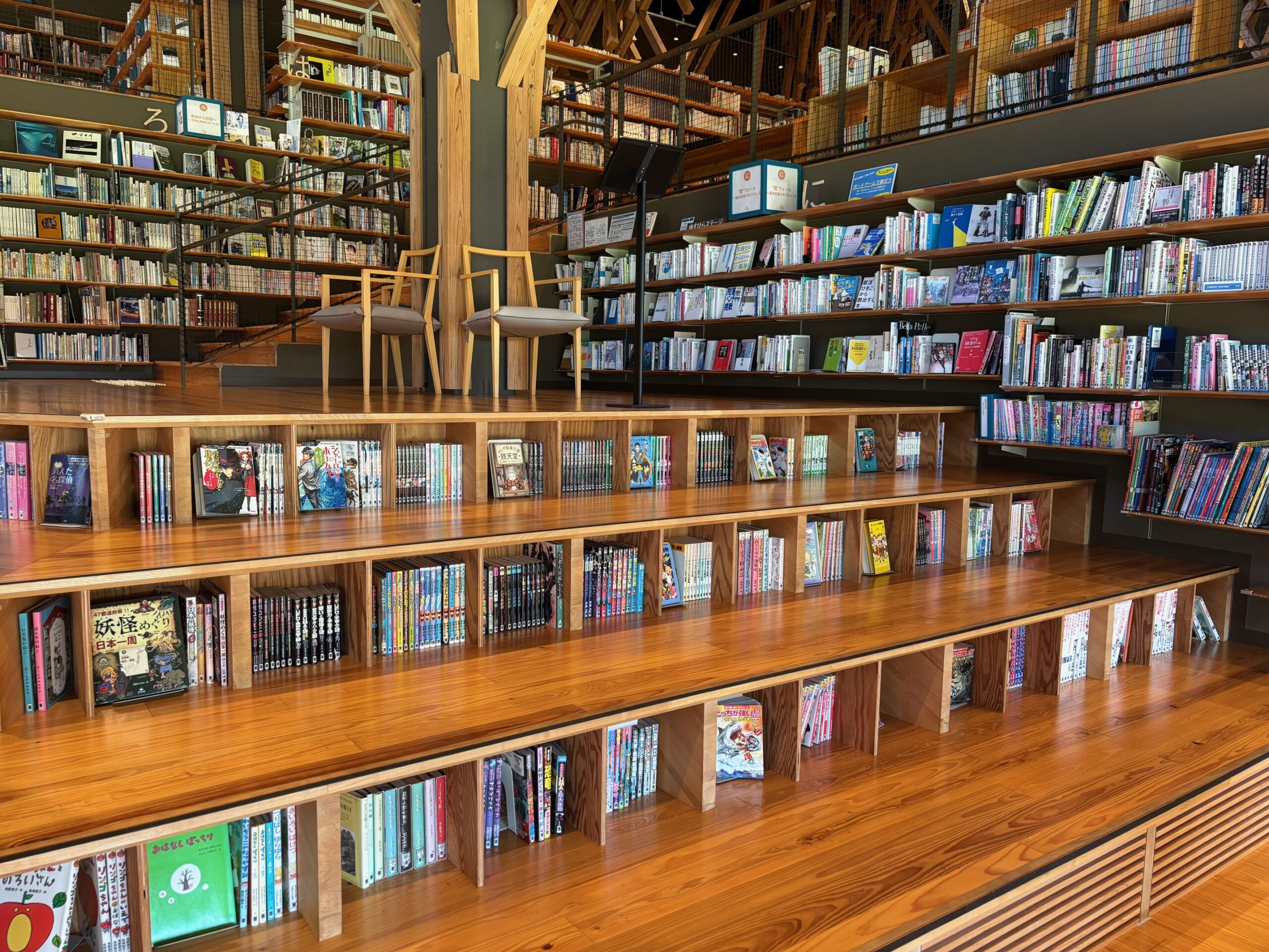 一階は子供たちがゲームをしてはしゃいでいたり、二階に上がれば静かに本を読めるスペースがあったり、大人も子供も思い思いの時間を過ごせるような空間になっていました。一度座って本を読み始めると居心地が良すぎてあっという間に1冊読み終わっていました(^^♪