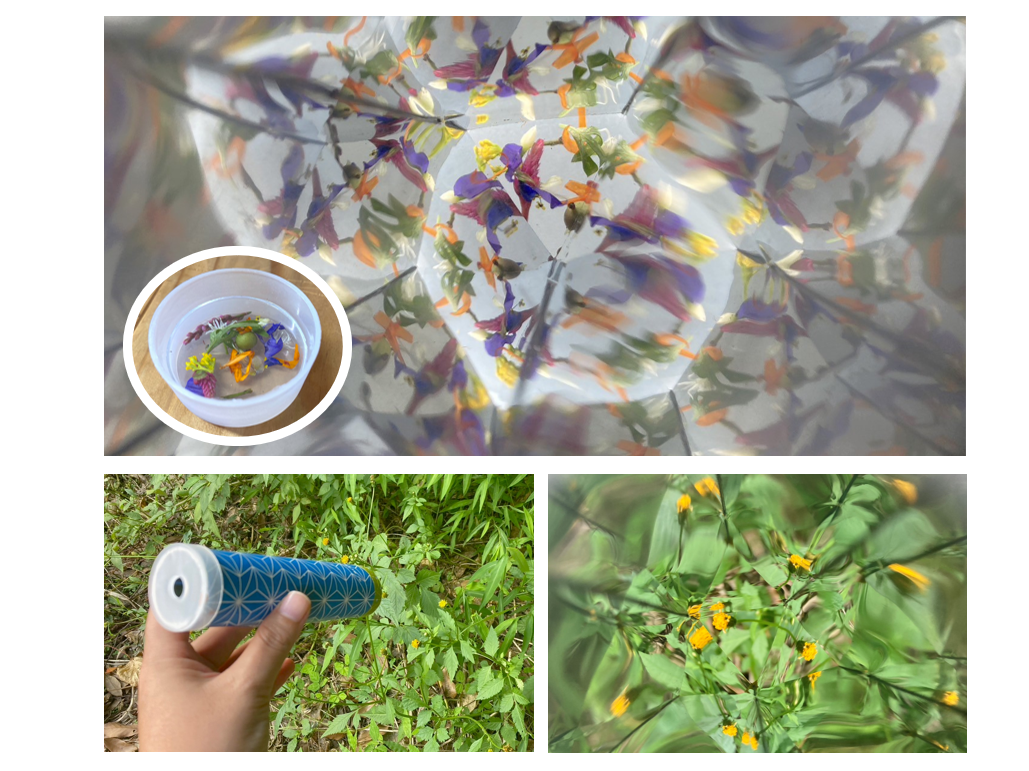 ビーズや自然の草花を素材にして、自分だけの万華鏡ができあがりました!
