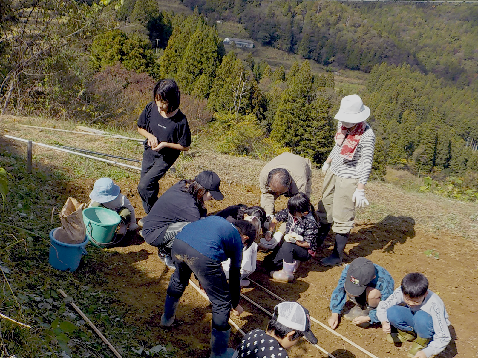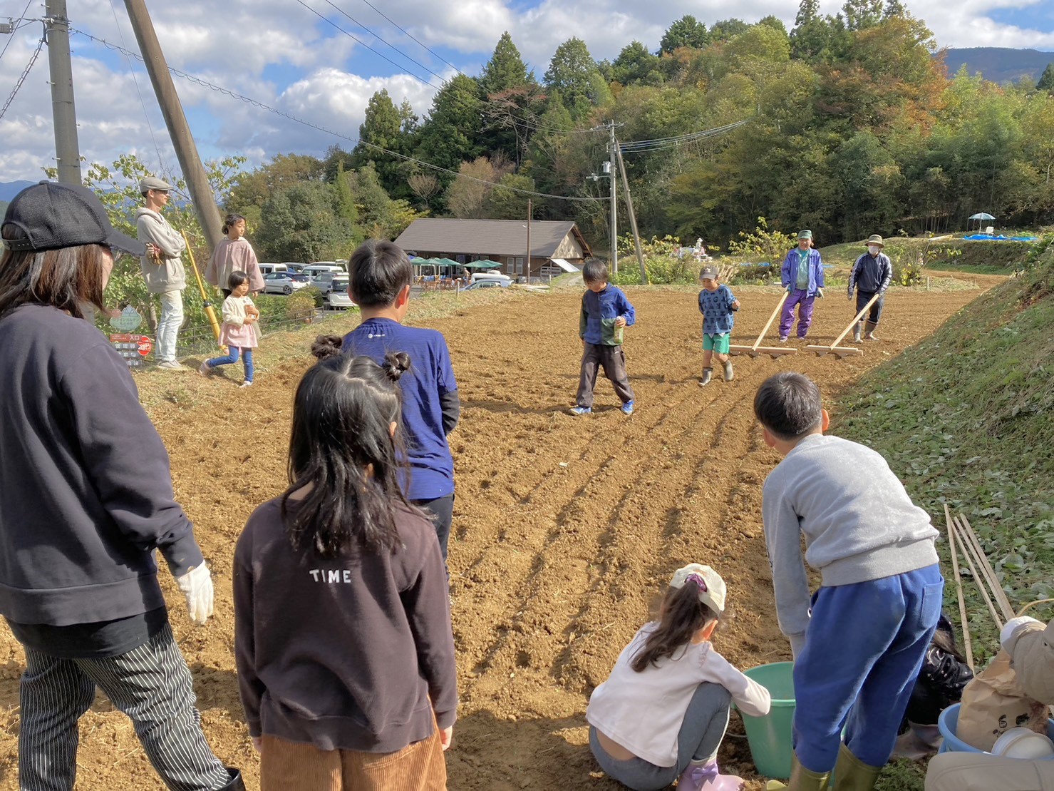 前日までの雨が心配でしたが、農作業体験を始めるころには青空も広がる行楽日和で、総勢33名の方にご参加いただきました。