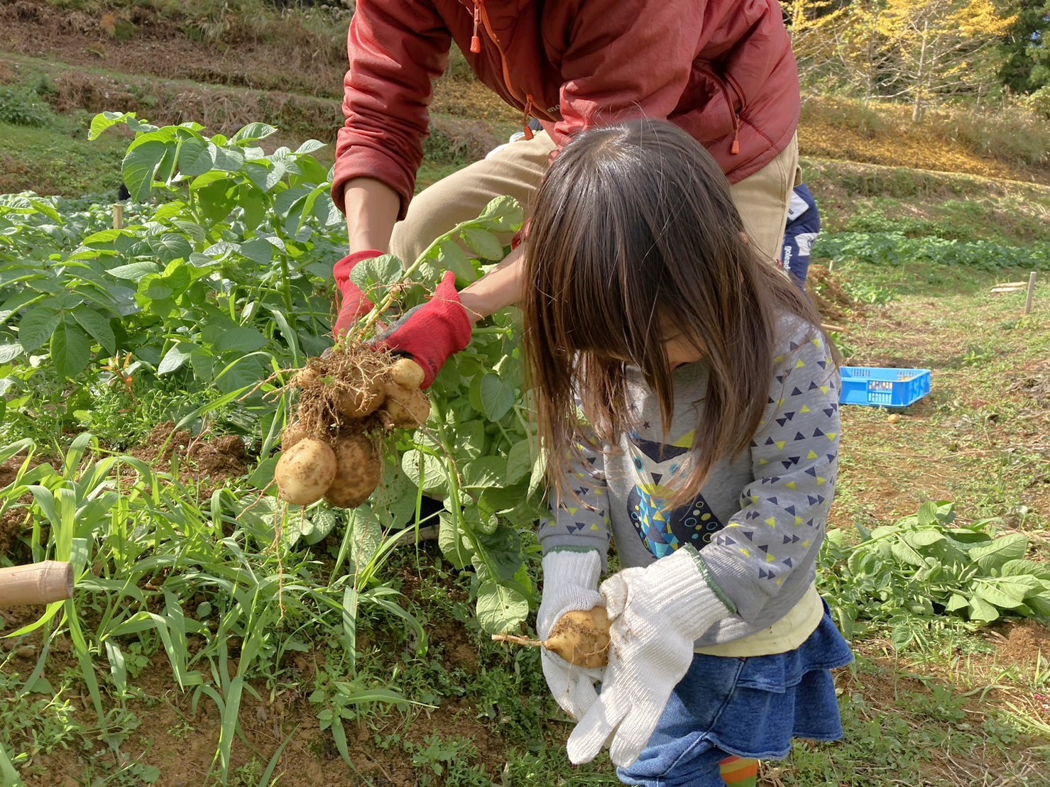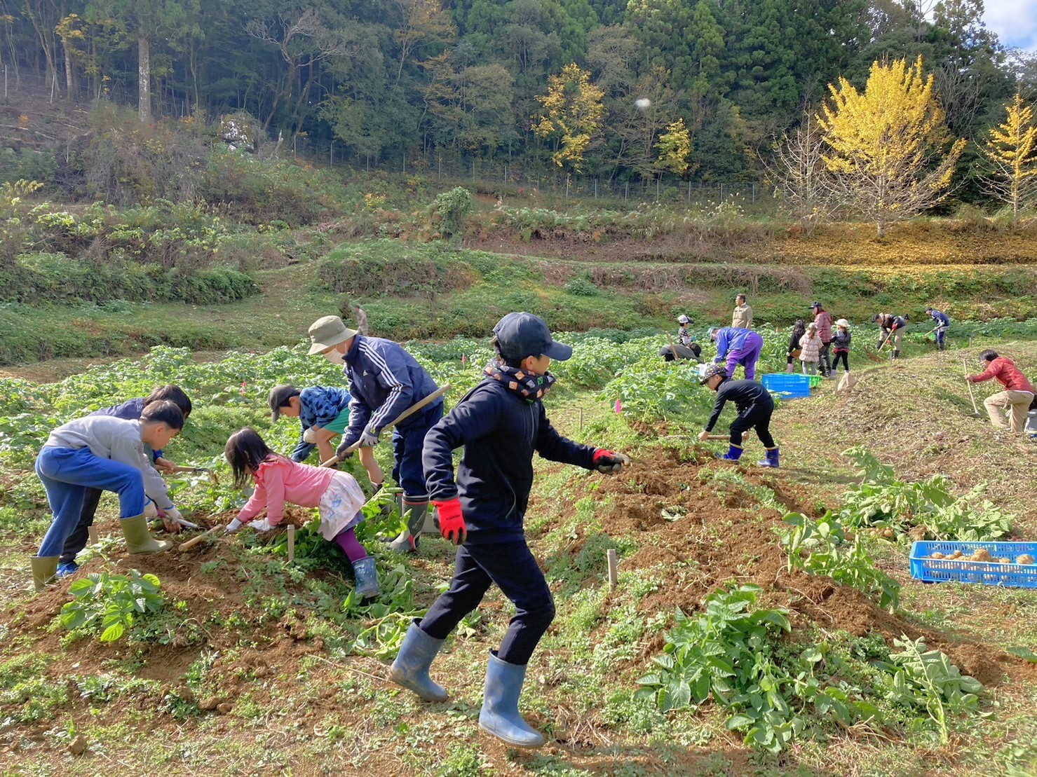 最初の農業体験は、じゃがいも堀り!